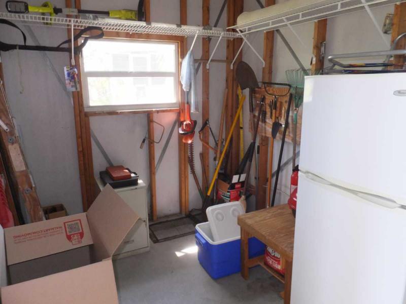 The storage shed, work shop, includes an extra fridge..