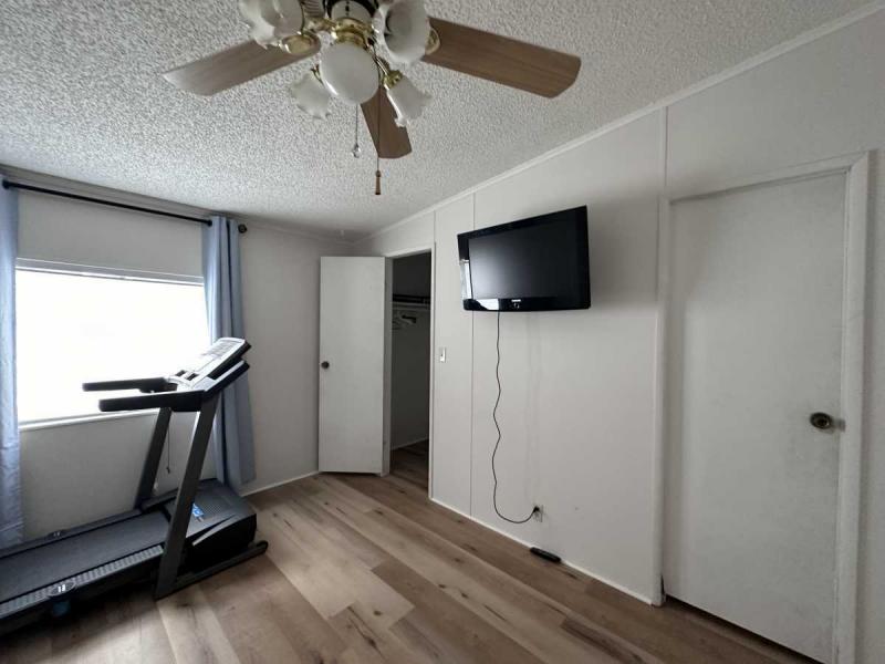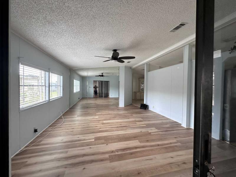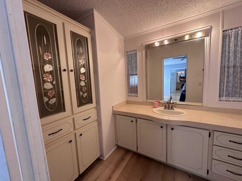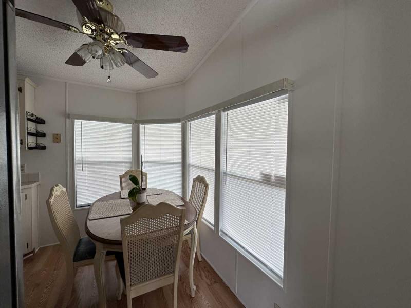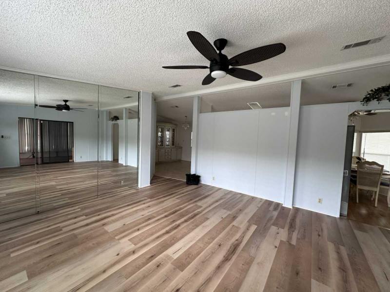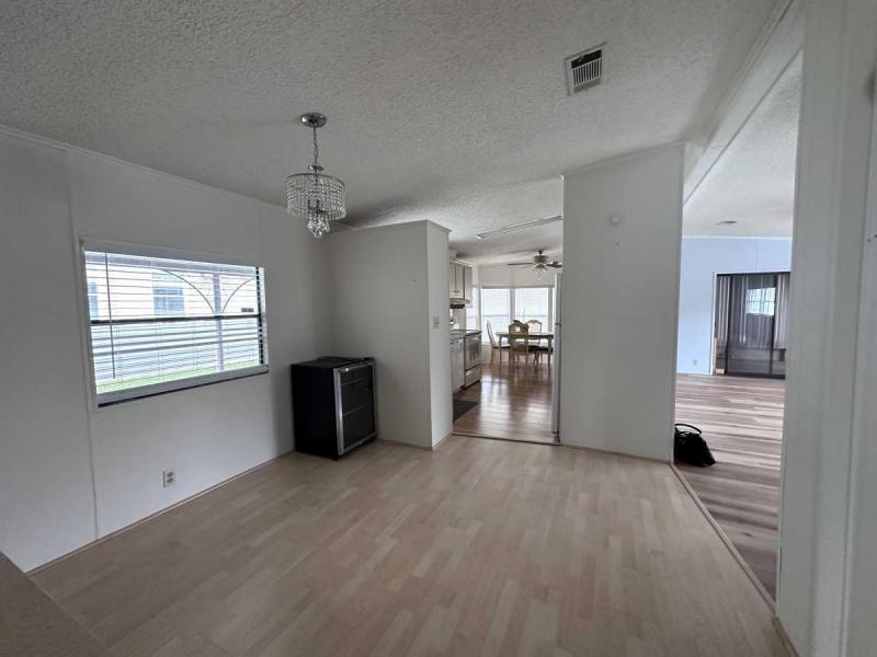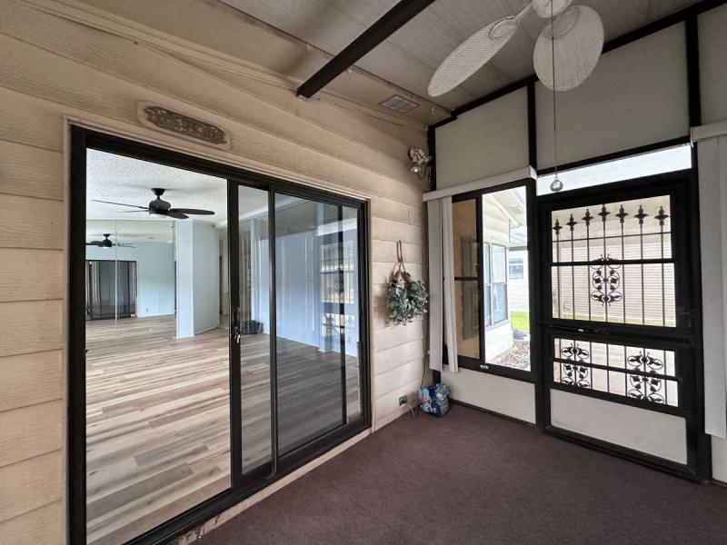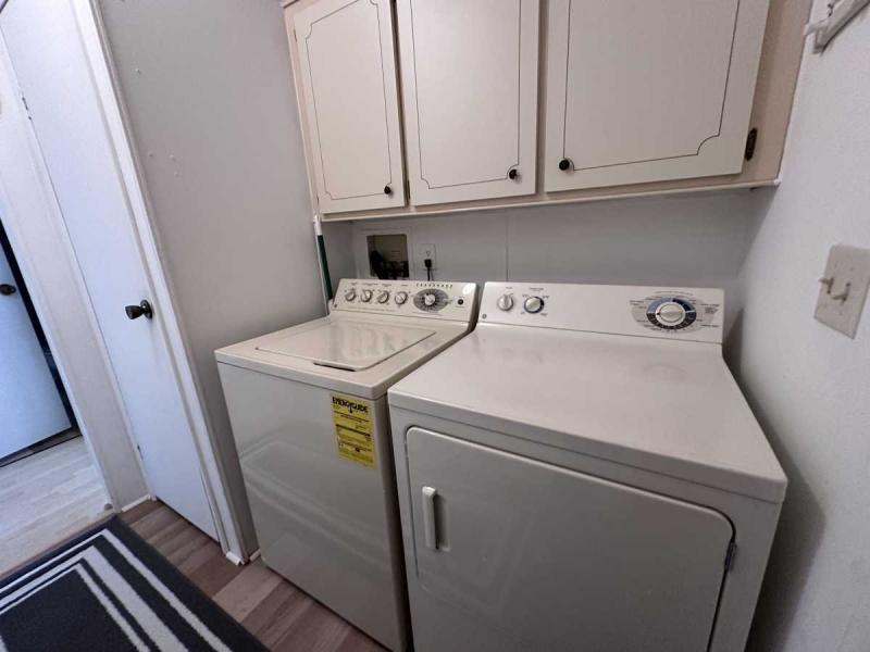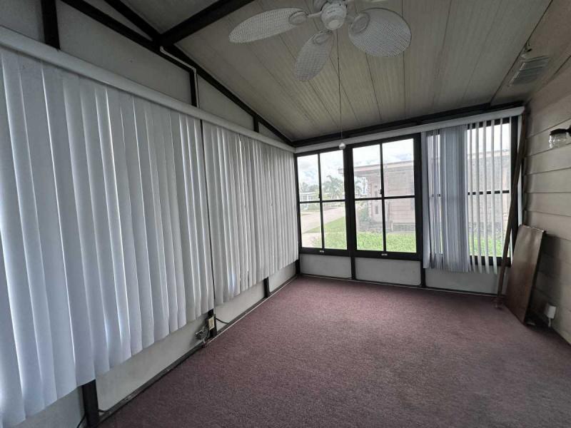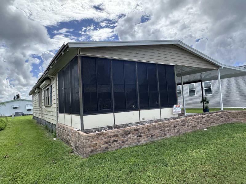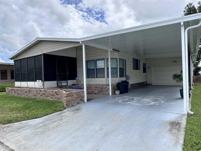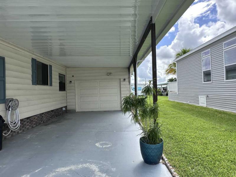 This charming spacious home with a cathedral ceiling is spacious and ready for you to fill with your treasures. The 2 bedroom, 2 bath home is a must see! So open and cheerful and well taken care of and comes with walk-in closets. The kitchen is ample size and comes with breakfast table. Kitchen also has 2 refrigerators and a wine/beer fridge. The separate dining room has a lovely built in hutch and plenty of room for a large table. Washer/dryer are inside the home and located by the back door. The front porch has been enclosed with indoor/outdoor carpeting and vertical blinds. The AC unit was new in 2019 and the Vapor Barrier, under the home, was new in 2023. The metal roof was replaced in 2014 and was inspected after Ian with no damage. A new carport was installed in 2024 and the hot water heater is 5 years old and has water softener reverse osmoses system in the garage. The huge garage comes with a rolling garage door with remote controlled opener and has tons of storage. It also includes a standup freezer and can house your golf cart, motorcycle or even a small boat! Buccaneer Estate is a pet friendly park with tons of amenities. Do not let this opportunity pass you by! Come and get your piece of paradise here in South Florida!