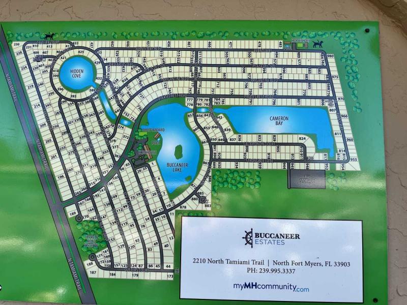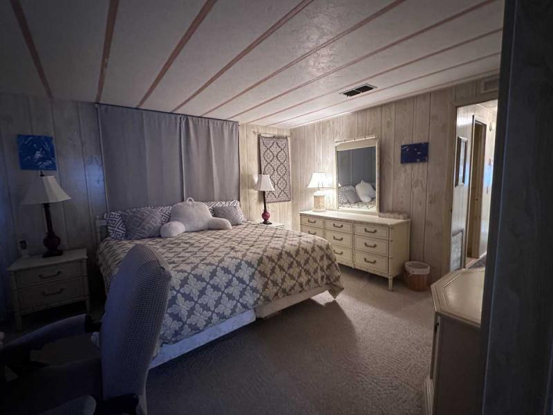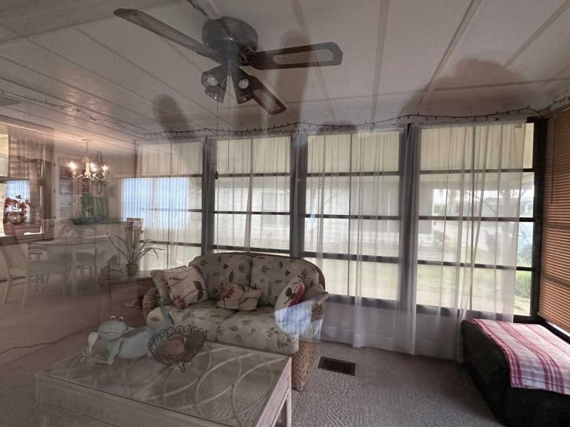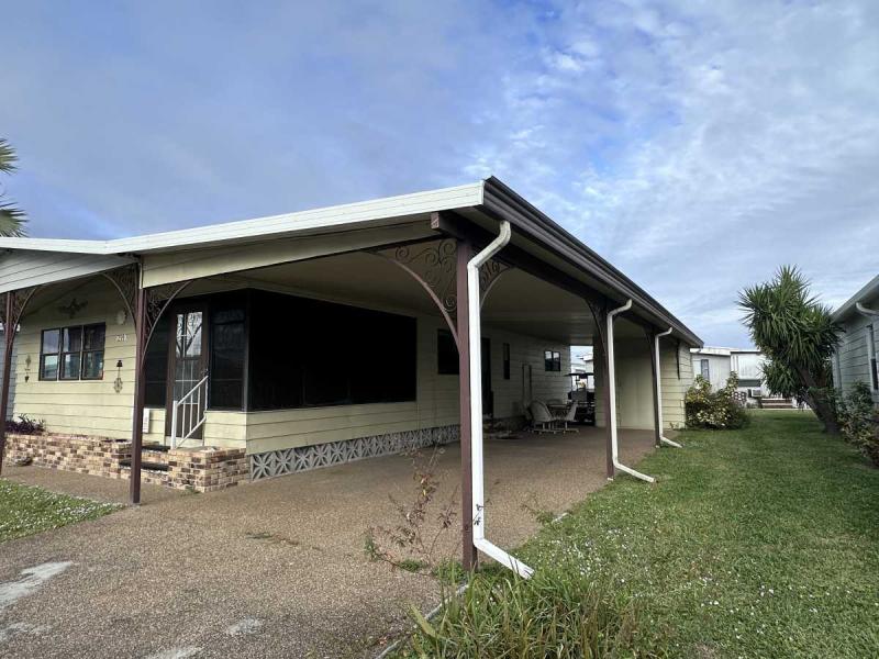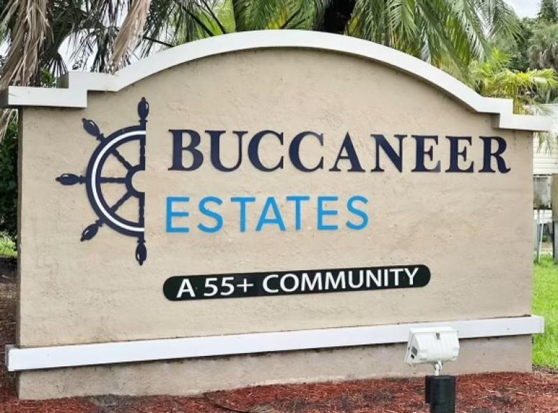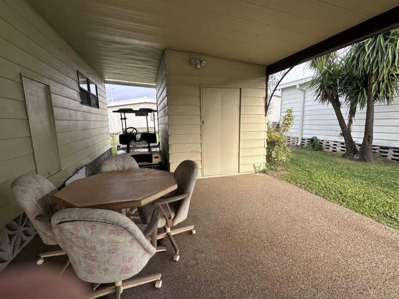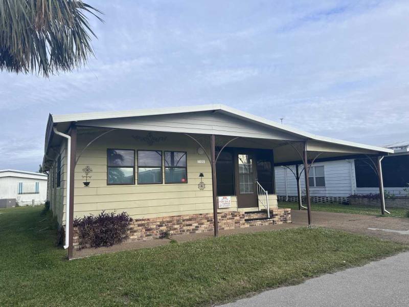 This home has just been reduced & what a gem for the price! This bright and cheerful home is in Buccaneer Estate/pet friendly and is ready to make your Florida dreams come true! It is a 2 bedroom/2 bath home with an open concept living area! The bedrooms are spacious & come with furnishings. The master bedroom has an en-suite bath with a standup shower and a large walk-in closet. There is a built-in island in the kitchen which houses the stovetop on the island. Great place to have your morning breakfast. There is plenty of cabinet space plus a pantry closet & comes with all kitchenware. The dining room has a lovely built in hutch and is open to the living room that is bright & sunny! This home comes completely furnished with all appliances including a pullout sofa for visiting guests. The enclosed Florida room is a great place for relaxing. The original walls are still intact & are easily paintable if you want to change the colors. Most of the home is carpeted but in excellent shape. The AC/Heater is approximately 3 years old and is still under warranty for 10 years. Electrical panel was replaced 5 years ago & pest control comes every 3 months to spray. The roof is metal and a roof/over and was coated a few years back with the elastic polymer coating. Over the ornamental brick at the bottom of the home has been covered with a screen. A soaker hose is in the front flower bed to water the plants. The home can house 2 vehicles plus a golf cart, which is included in the sale at the right price! The shed has the washer/dryer which are included and plenty of storage, including the tools. Hurricane damage was minimal and has all been repaired! Lot rent, $1,028.00 includes all utilities except for Wi-Fi/cable and electricity. Buccaneer Estate has 3 pools, 2 gyms and many more amenities. This is a lot of home for the money and well worth making an appointment to see. I also do FaceTime live tours if needed. Call today for more information.