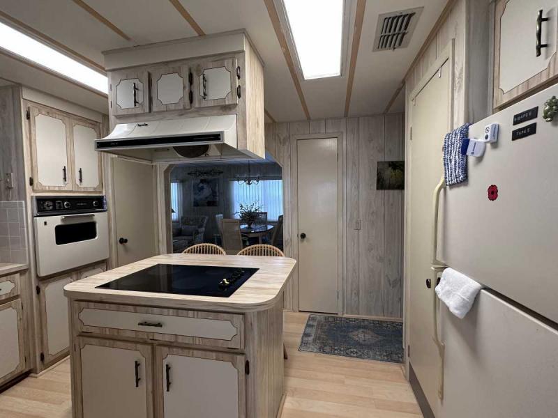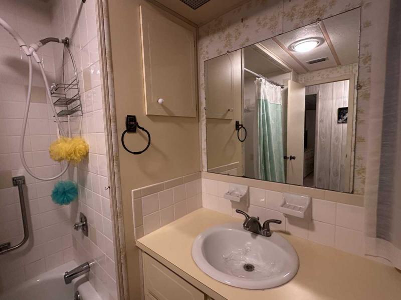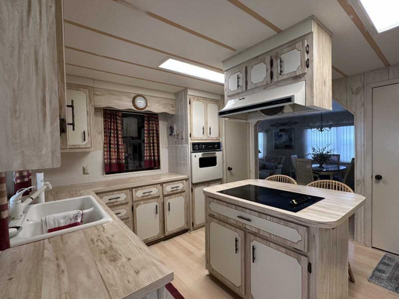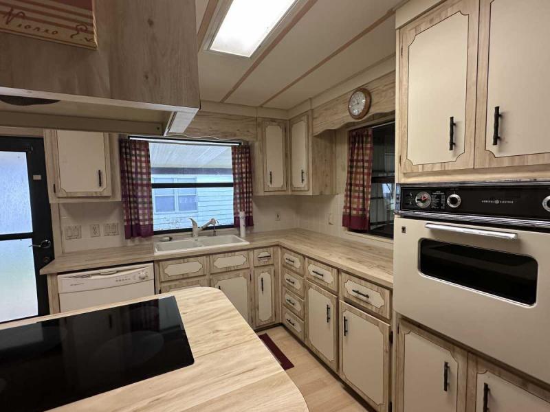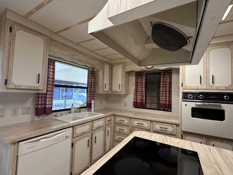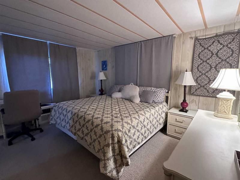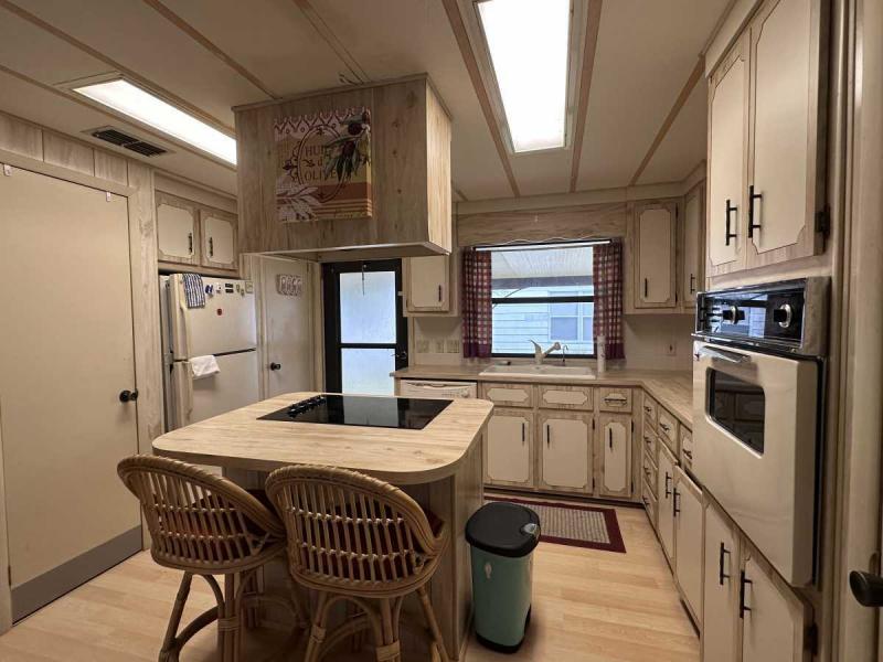 This home has just been reduced & what a gem for the price! This bright and cheerful home is in Buccaneer Estate/pet friendly and is ready to make your Florida dreams come true! It is a 2 bedroom/2 bath home with an open concept living area! The bedrooms are spacious & come with furnishings. The master bedroom has an en-suite bath with a standup shower and a large walk-in closet. There is a built-in island in the kitchen which houses the stovetop on the island. Great place to have your morning breakfast. There is plenty of cabinet space plus a pantry closet & comes with all kitchenware. The dining room has a lovely built in hutch and is open to the living room that is bright & sunny! This home comes completely furnished with all appliances including a pullout sofa for visiting guests. The enclosed Florida room is a great place for relaxing. The original walls are still intact & are easily paintable if you want to change the colors. Most of the home is carpeted but in excellent shape. The AC/Heater is approximately 3 years old and is still under warranty for 10 years. Electrical panel was replaced 5 years ago & pest control comes every 3 months to spray. The roof is metal and a roof/over and was coated a few years back with the elastic polymer coating. Over the ornamental brick at the bottom of the home has been covered with a screen. A soaker hose is in the front flower bed to water the plants. The home can house 2 vehicles plus a golf cart, which is included in the sale at the right price! The shed has the washer/dryer which are included and plenty of storage, including the tools. Hurricane damage was minimal and has all been repaired! Lot rent, $1,028.00 includes all utilities except for Wi-Fi/cable and electricity. Buccaneer Estate has 3 pools, 2 gyms and many more amenities. This is a lot of home for the money and well worth making an appointment to see. I also do FaceTime live tours if needed. Call today for more information.