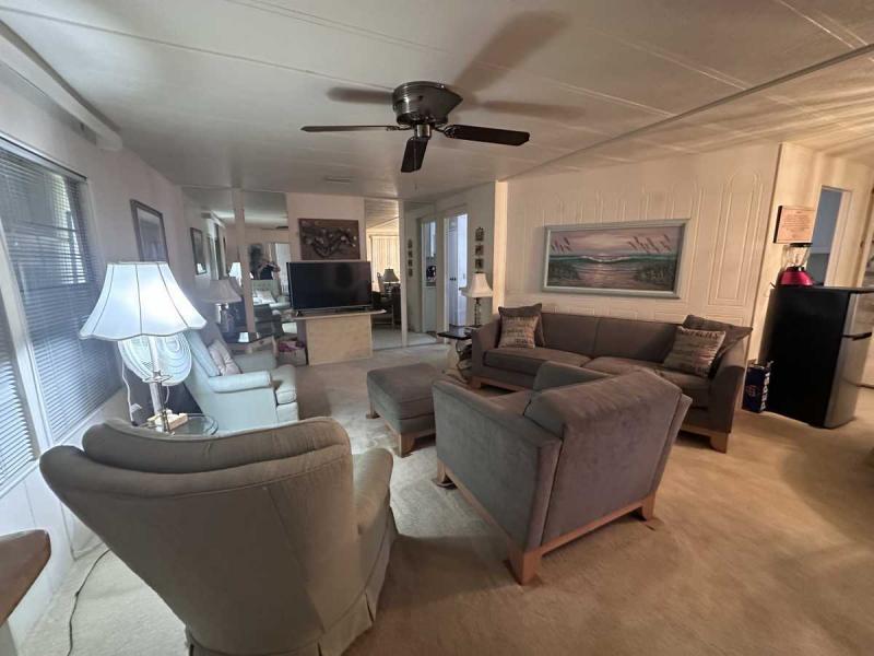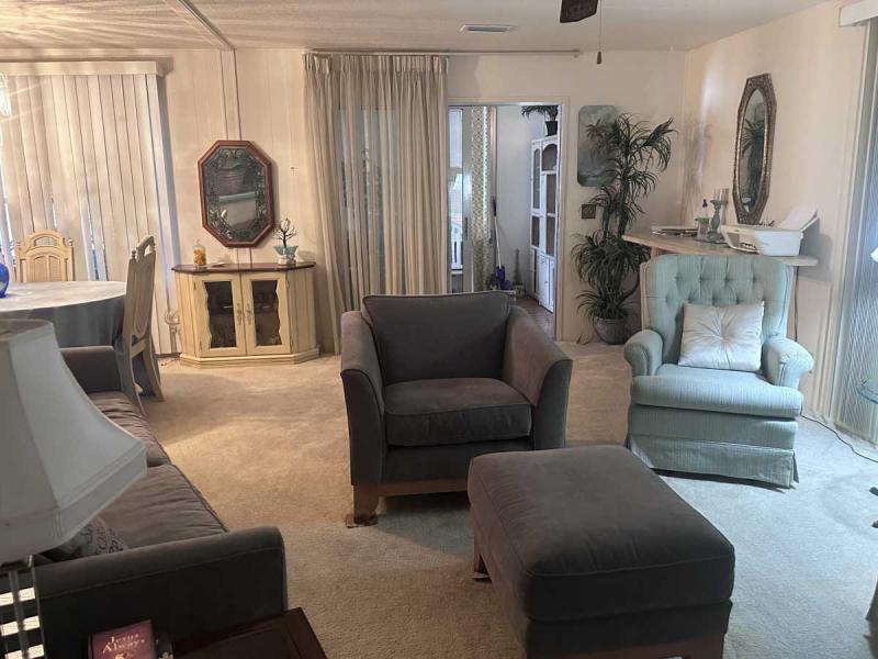 Motivated seller offering a great price on a 2 bedroom/2 bath double-wide mobile home in a 55+ community! The en-suite bathroom has a separate linen closet & a pantry in the hallway off the kitchen. This home has been well maintained and is in great condition. It comes fully furnished and ready for you to move in! This home has lovely landscaping and has great curb appeal. The floor is in the kitchen and the hallway were replaced in 2019. The bedroom and the living room are all carpeted & the master bath has built in linen closet. The kitchen has newer cabinets, dual ovens and a garbage disposal with laminate countertops. It has a sweet breakfast area and a separate dining room with a built-in hutch. It had a new water heater in 2022 and a metal roof which was resealed in 2021. It has a solid vapor barrier that was inspected in 2021 and it?s in great condition. It also has a new water heater in 2023. The Lennox AC unit is five years old and it is still under warranty for parts & inspected in March 2025. The washer and dryer are in the shed under the carport. The carport holes three vehicles. It also has a new front awning and tie-downs have been repaired. This home is ready for new buyers and his price right to sell quickly so called today.