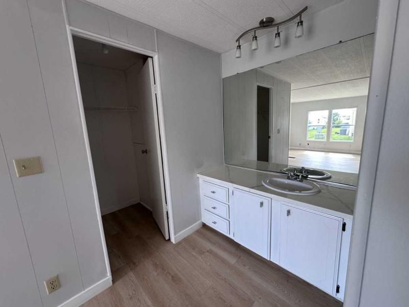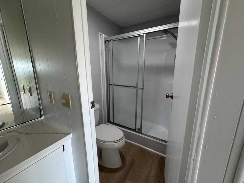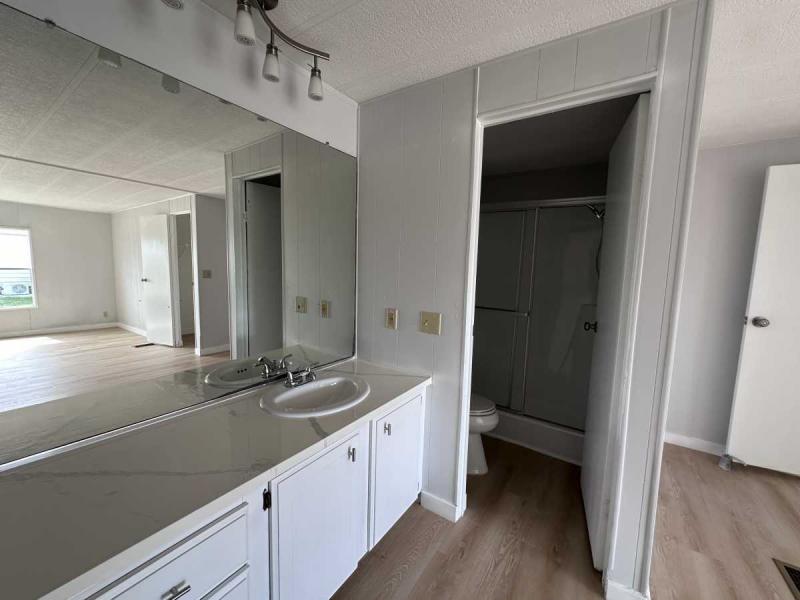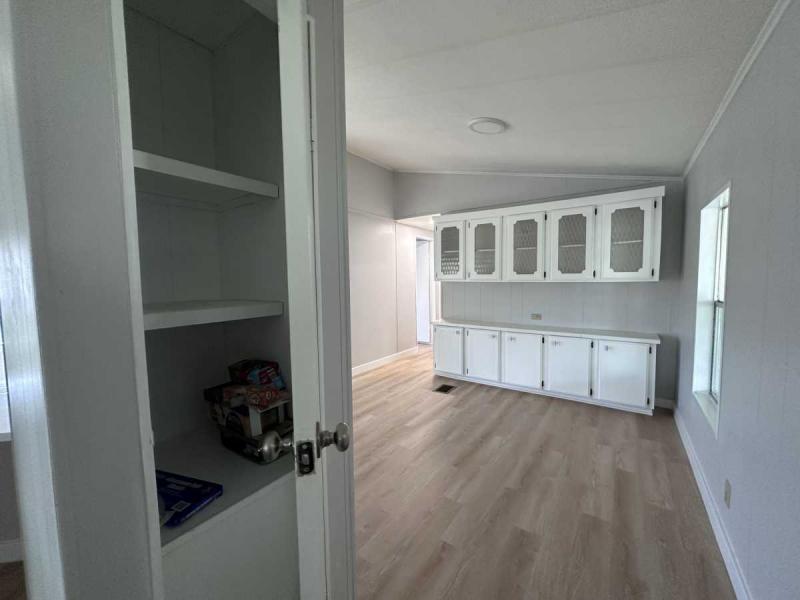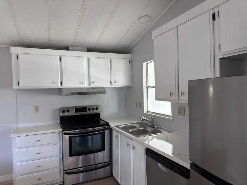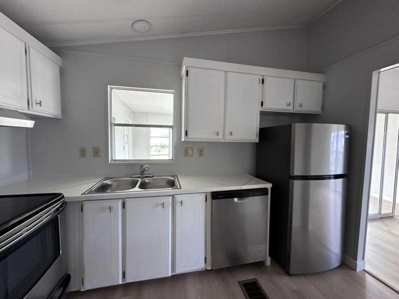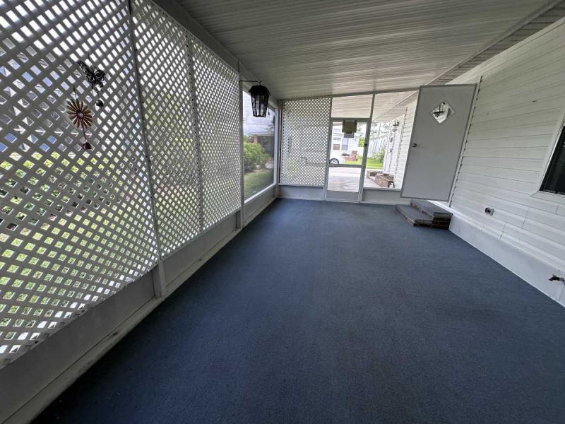 This home is bright and cheerful and on a corner lot near the pools and clubhouses. The roof was replaced in 2023 and new flooring is luxury vinyl plank flooring including new baseboards. The interior has all been replanted and the second bathroom has been updated. All the kitchen cabinets were refinished and epoxy countertops in the bathroom and kitchen. The new appliances in the kitchen are are stainless steel and has a breakfast bar island separating the kitchen from the living area. Cathedral ceilings gives it a very open and inviting feel and full of natural light. AC has been serviced with no issue. The huge front porch is enclosed and give you so much more living space. It has a newer washer/dryer in the humungous shed with double doors and plenty of storage space. The large screened in Lanai is a great open area and the screens are covered with lattice for your privacy. Come and see this great home at a great prices!!!