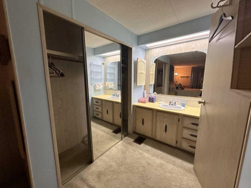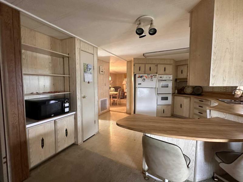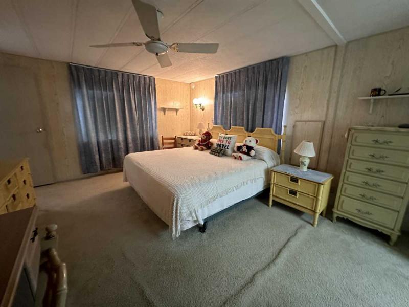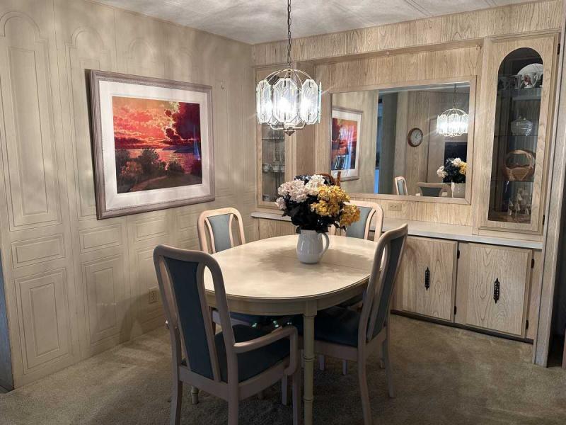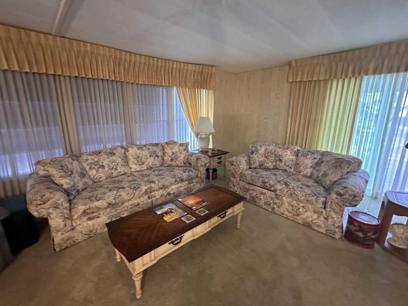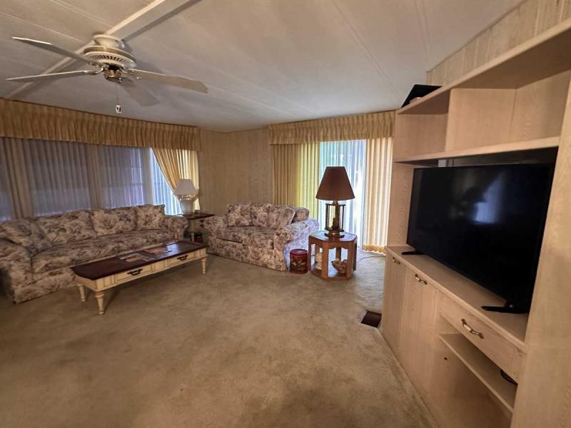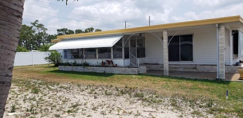 You will love this large, 1,344 sq foot, 2 bedroom, 2 bath home. It comes fully furnished including all appliances. Extra large master bedroom with en-suite bathroom with lots of closet space. Very large living room and dinning room. Bedrooms and living area are carpeted. There is new plumbing 7 years ago and the bathrooms with new toilets with handrails throughout including the showers. The side door also has sturdy hand railings. This home has a new roof over with a new 1 piece membrane in 2023 and the warranty is transferable. The AC unit is 7 years old and service regularly. The washer/dryer is housed in the large shed which has lots of storage. Has a lovely lanai and has awnings and a new awning in the front of the home. This home is insured with Citizens and has passed a 4 point inspection. This community is pet friendly! Call today…it won’t last long!