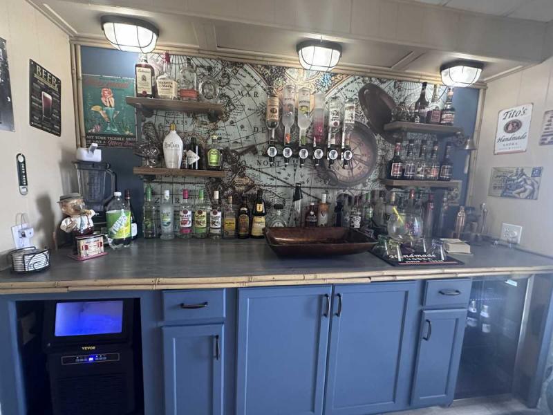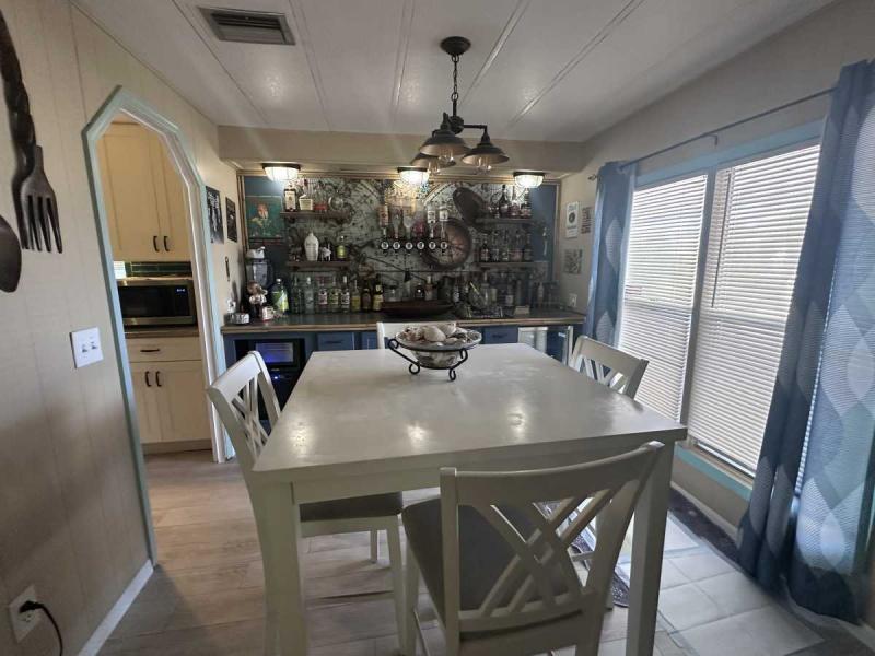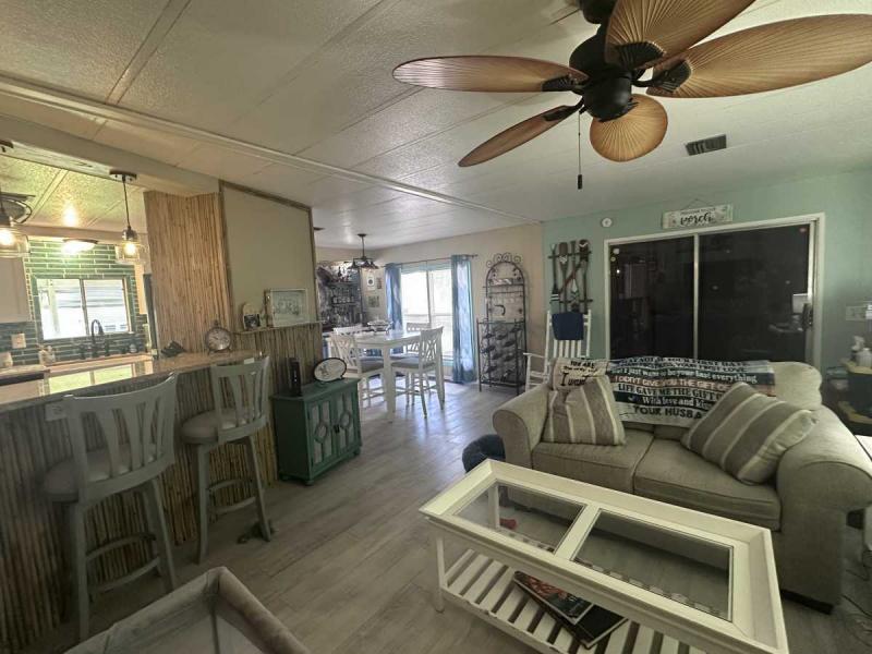 This lovely bright and cheerful furnished home has been remodeled and has two bedrooms and two baths. The home has all new sub flooring and laminate waterproof flooring except for the bathrooms. The flooring was installed approximately 2 years ago. The guest bathroom was recently renovated. It has a new electric panel at the cost of $3,000! The kitchen has been entirely renovated with a new breakfast bar/3stools and a coffee bar. The kitchen has new white cabinets and beautiful granite countertops. It has a large farm sink with new ceramic tile backsplash. All new lighting throughout the home with three new ceiling fans. The interior of the home has been newly painted and comes with 4 TV?s. The wall decorations are negotiable. The front porch that is enclosed approximately 200 ft.² it comes with all appliances. All appliances are in great working order and washer/dryer are 2 years old. The right side of the mobile home has been redone with sheet rock. The dining room is a special area of the house. It has been turned into a bar area with a liquor wall dispensers. It?s a special feature you won?t find in any other home! If purchased at the full price, all the liquor is included! Great thing about this house there?s no backyard neighbors! There?s a lot of really good things happening in Buccaneer Estate and offers many amenities including 3 swimming pools, 2 exercise gyms, sauna, hot tub and so much more. Start your Florida lifestyle in this beautiful home near beaches. It has a beautiful enclosed lanai with an attached 8×10 shed that houses the washer dryer with plenty of storage. This is a 55+ community, park approval and is pet friendly! Your Florida dream is a phone call away! Call today for more information!