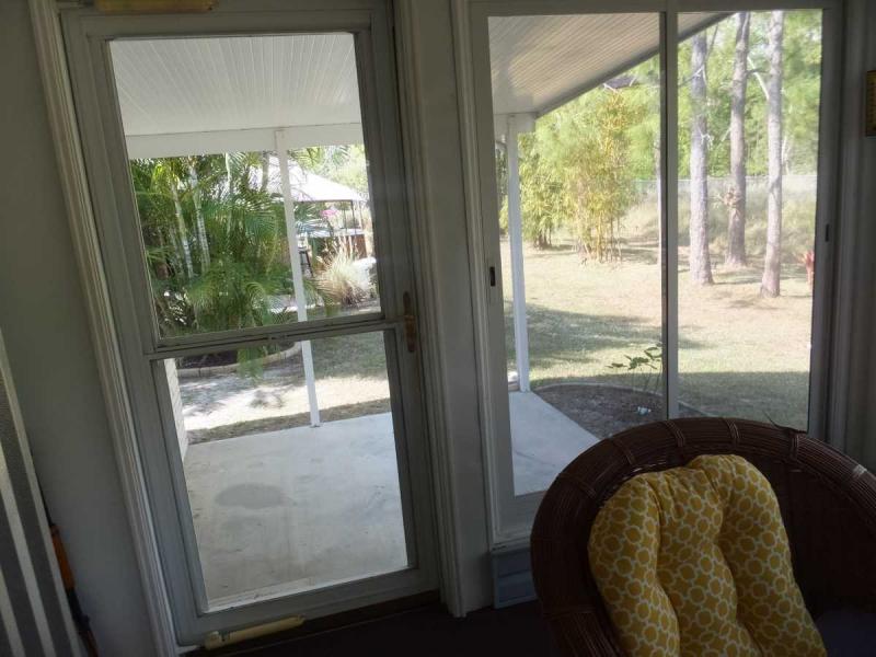 Gorgeous Florida room ,, sliding glass windows enclosed with ” Views to die for ” overlooking your private back yard. Ignore the clutter please,, Elderly owner is packing to move !!!