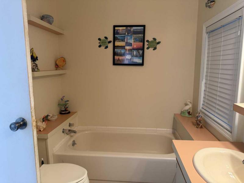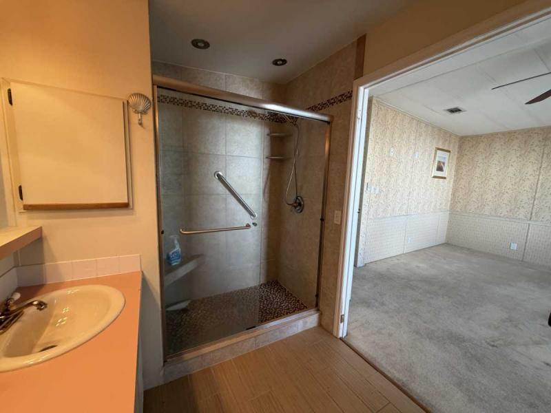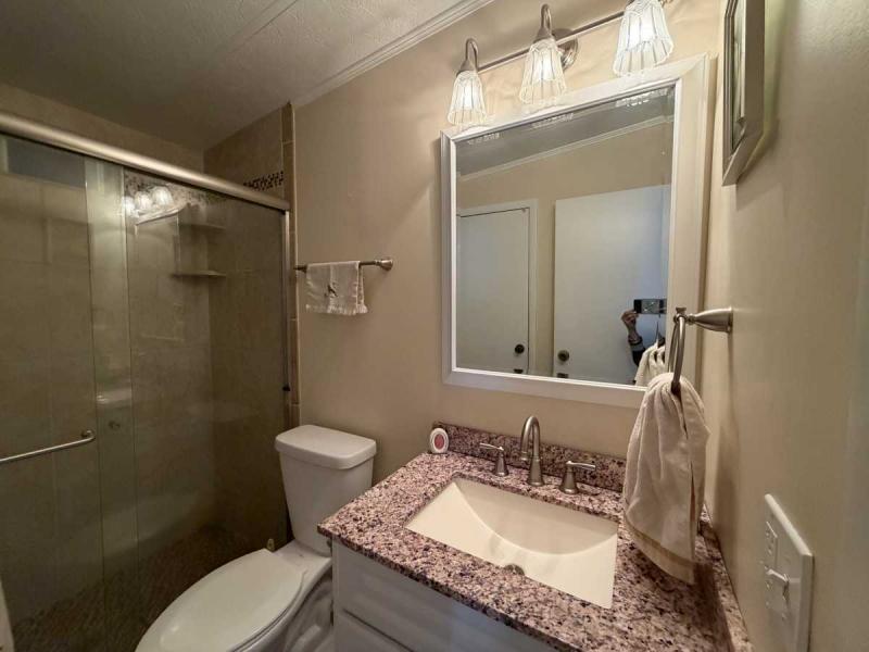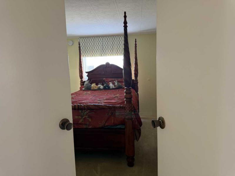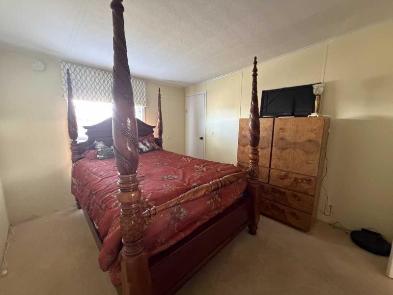 Welcome to this lovely two bedroom, two bath home in Buccaneer Estates in a 55+ community. Park approval is required! This Home comes furnished with all appliances, but no microwave. Both bathrooms have lovely new showers & the master bath has a separate tub! All the flooring is an excellent condition. The new rubber roof was installed in 2018. The AC with heat was installed in 2020 and the ducks were all cleaned in 2024. The AC unit is a 3 ton unit. The Florida room has a mini split AC unit and a beautiful front door & carpeted. This home has all new Anderson Windows in 2019 and are hurricane impact. It has had a four-point inspection, for insurance purposes, with Citizens in 2020, and it passed. The water heater was new in 2024 and the Vapor Barrier is intact per inspection. Great perk about this home is that it comes with a garage with a remote. It is where the washer and dryer are housed. The workbench will stay, but the golf cart is not part of the price of the home. The carport will hold two vehicles. The homeowner is leaving all the pots and pans, dishes, beddings and towels. So you can just move in immediately! Electric bill is never over 130 year round. A lot of rent for February is $1215. Owner will take a reasonable offer! Call today to make your Florida dream come true!