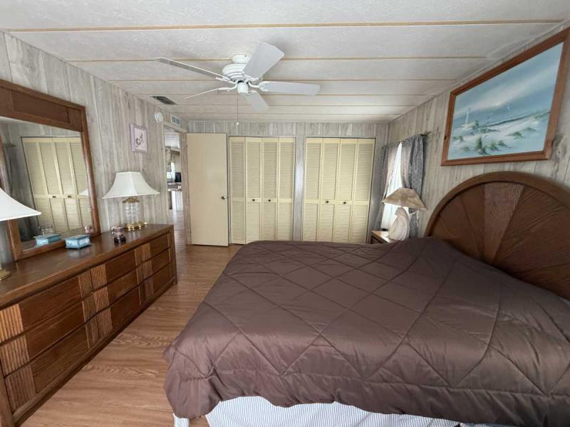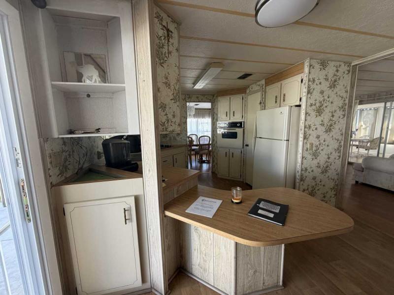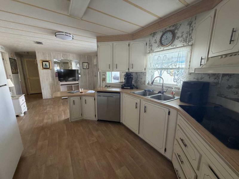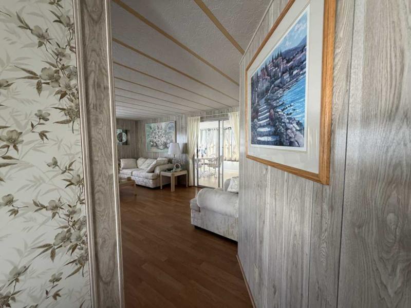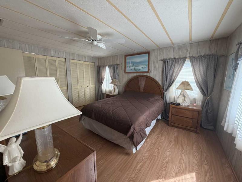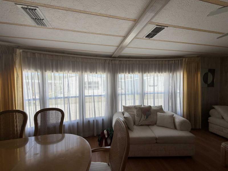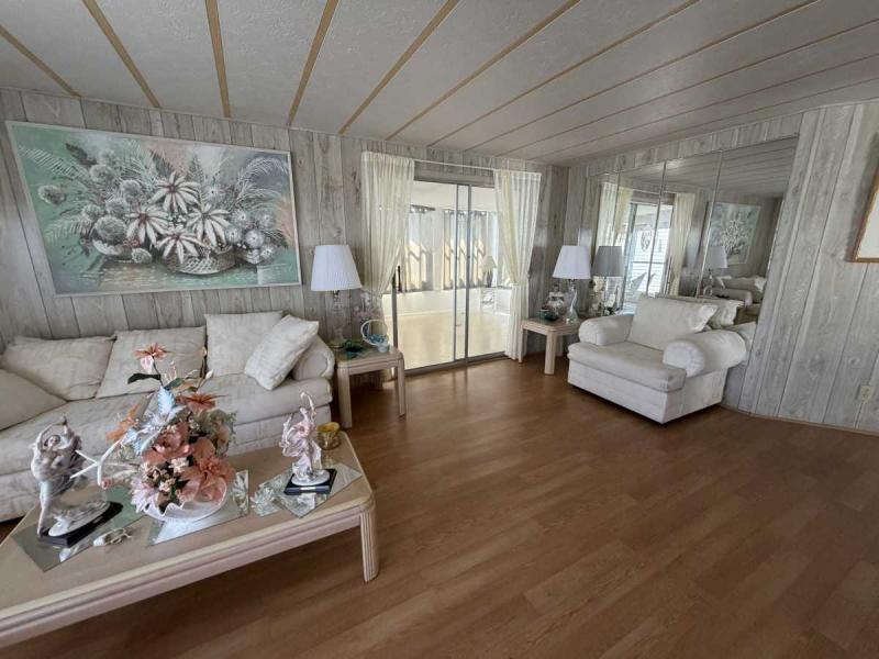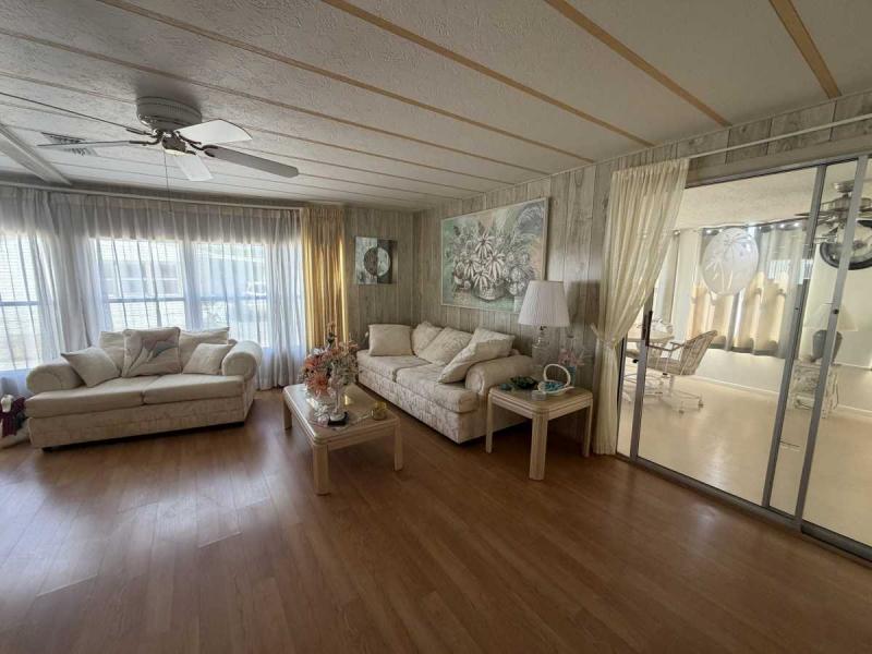 A lovely home, fully furnished with all appliances for a great price! This is a two bedroom two bath home located in Buccaneers Estates, a 55+ community. The floors in this home were redone a few years ago. It has a dishwasher and garbage disposal and all the appliances are included. Linens, towels and all kitchen utensils are included as well. The pass-through kitchen with the little den area leads into the dining room that has a built-in hutch. The front of the house has lots of lovely windows that lets in a lot of light! It has an awesome enclosed lanai, which makes a great little TV room & a great place to have your morning coffee! The lanai has heat or air conditioning as needed. The roof was resealed in 2021 and is in good condition. The AC has recently been inspected in 2025. The entrance has a new slider door that was installed in 2025. The home has been well taken care of and kept very clean and it shows inside and out. The lot rent on this property is $1094 a month, which includes water, septic, taxes, garbage pick up and lawn care. This park has many amenities, including three heated swimming pool, hot tub, sauna, three workout gyms and so much more. It is near shopping, medical facilities, and great restaurants nearby, including the beach within 25 minutes and is also pet friendly.