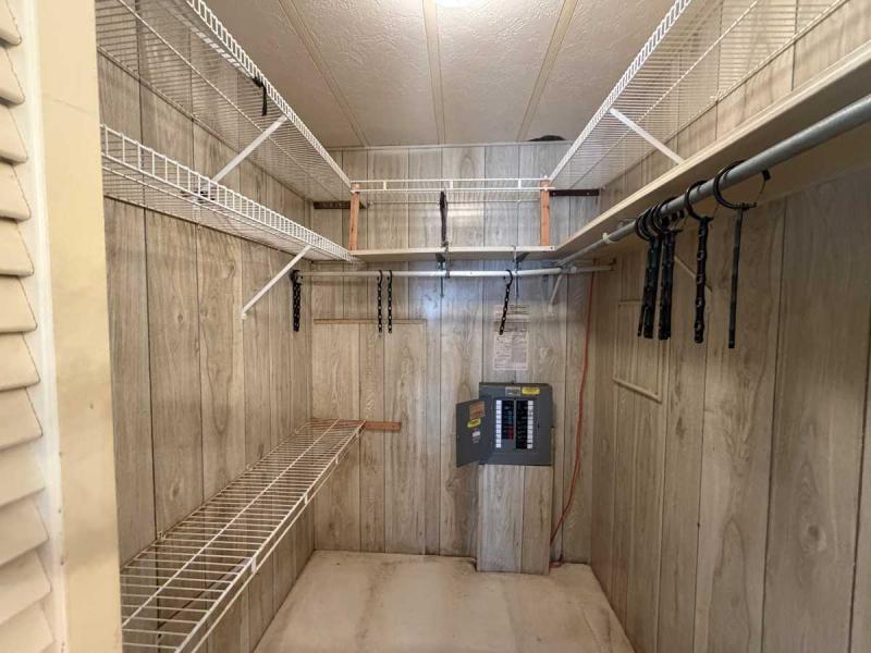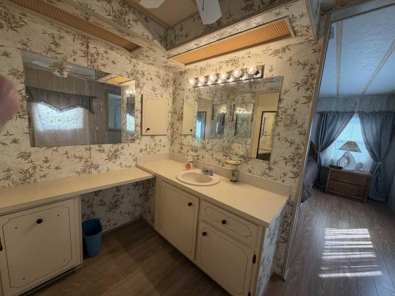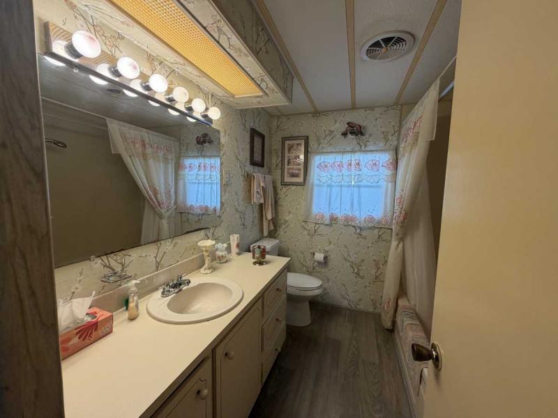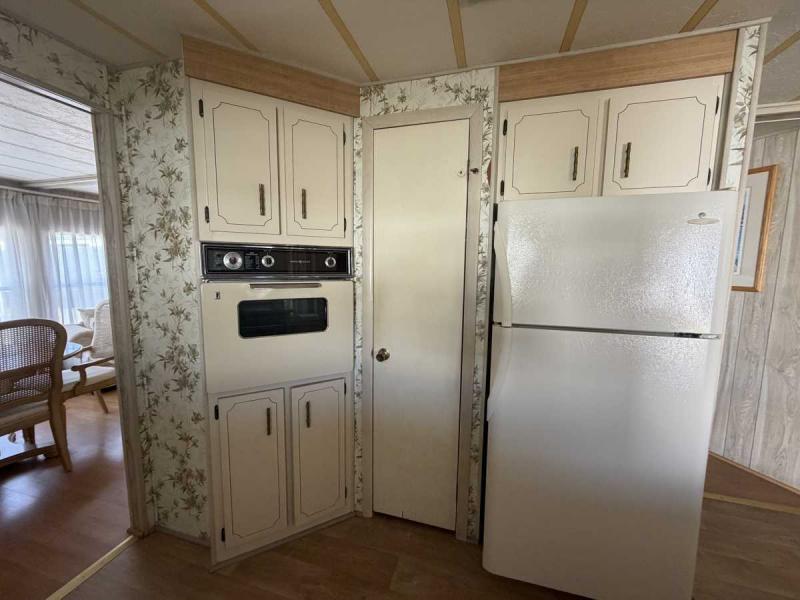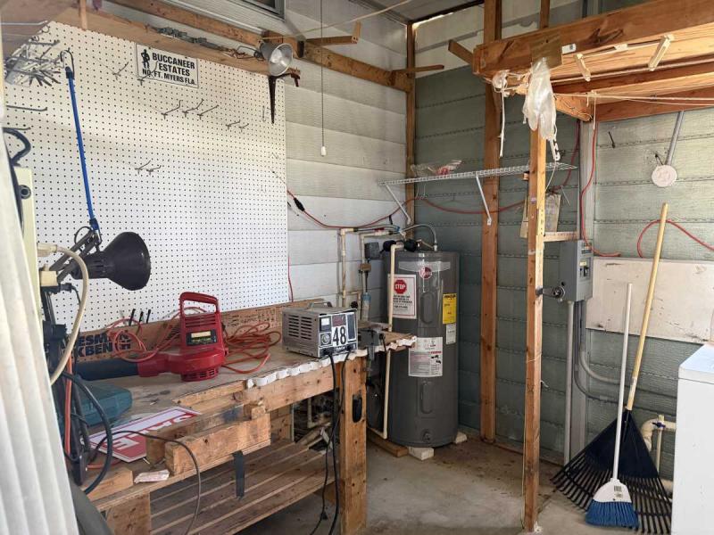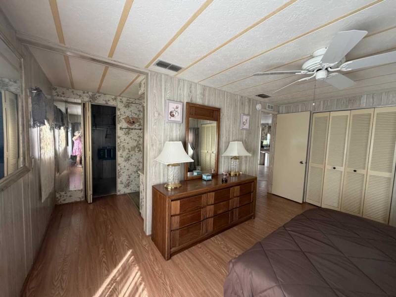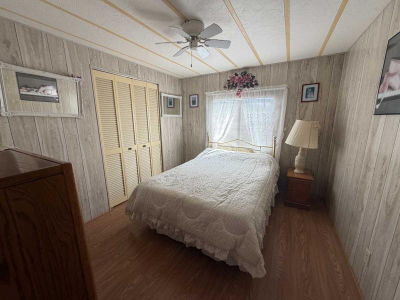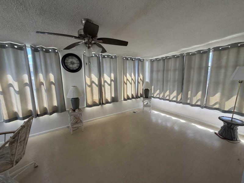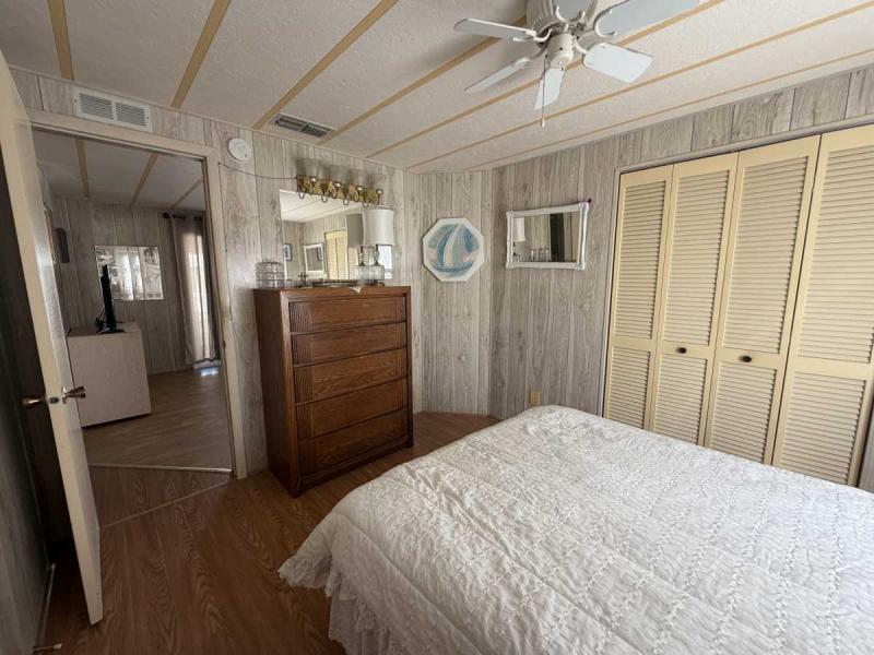 A lovely home, fully furnished with all appliances for a great price! This is a two bedroom two bath home located in Buccaneers Estates, a 55+ community. The floors in this home were redone a few years ago. It has a dishwasher and garbage disposal and all the appliances are included. Linens, towels and all kitchen utensils are included as well. The pass-through kitchen with the little den area leads into the dining room that has a built-in hutch. The front of the house has lots of lovely windows that lets in a lot of light! It has an awesome enclosed lanai, which makes a great little TV room & a great place to have your morning coffee! The lanai has heat or air conditioning as needed. The roof was resealed in 2021 and is in good condition. The AC has recently been inspected in 2025. The entrance has a new slider door that was installed in 2025. The home has been well taken care of and kept very clean and it shows inside and out. The lot rent on this property is $1094 a month, which includes water, septic, taxes, garbage pick up and lawn care. This park has many amenities, including three heated swimming pool, hot tub, sauna, three workout gyms and so much more. It is near shopping, medical facilities, and great restaurants nearby, including the beach within 25 minutes and is also pet friendly.